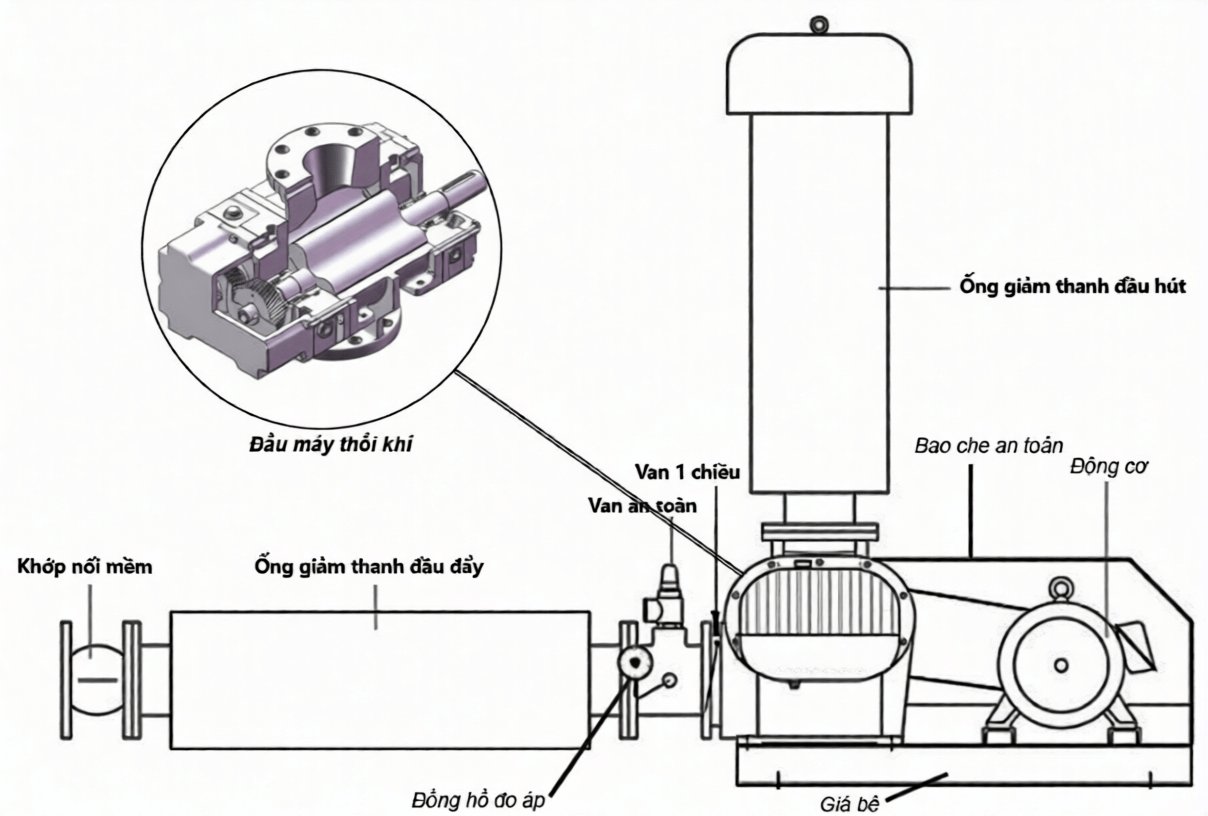 Cấu tạo máy thổi khí gồm những bộ phận nào?